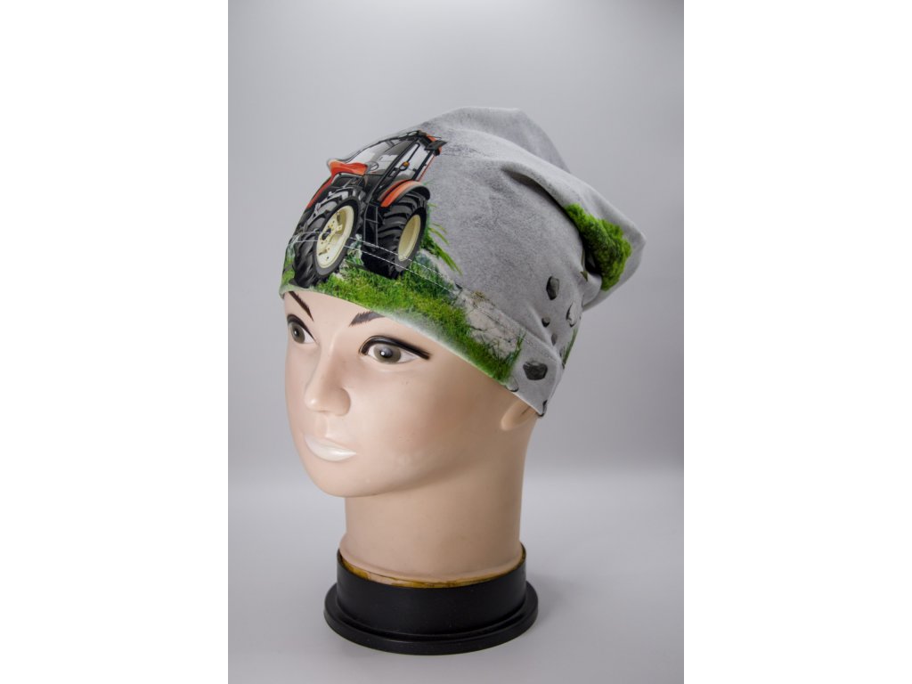 Čepice s motivem traktoru.
