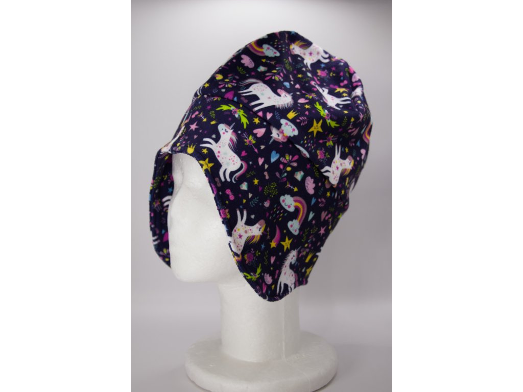 Dobře kryje čelo, ouška i tváře, nepadá a nepřetáčí se.
